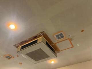 店舗の軒天井の塗り替え工事です🙌 真っ白になり、印象も華やかになりました‼️