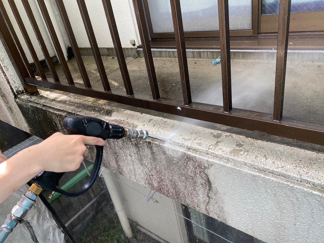 本日は、高圧洗浄です‼️‼️ 塗装前のとても重要な作業なので、 しっかり時間をかけて施工させて頂きます👍